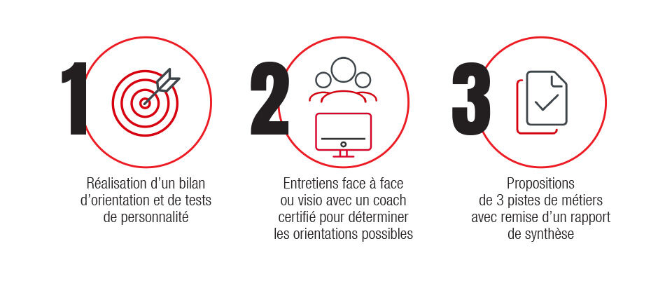 (3) Détail de la Box Orientation Scolaire FUTURNESS en 3 étapes : test personnalité, motivation et communication ; séance avec un spécialiste pour restitution des tests et connaissance approfondie du jeune ; proposition de 3 pistes métiers avec remise d’un rapport de synthèse. L’étape 1 débutera après réception d’un email et d’un SMS de FUTURNESS.